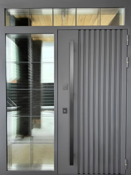 Дверь с терморазрывом и ручкой скобой. Ручка скоба-флагман в мире ручек. Главное преимущество такой ручки-это ее стационарная конструкция. Такая ручка не управляет механизмом замка, что обеспечивает ее долгий срок службы. Закажите дверь с терморазрывом от ALGADOORS, что бы навсегда забыть о промерзании, конденсате и наледи.